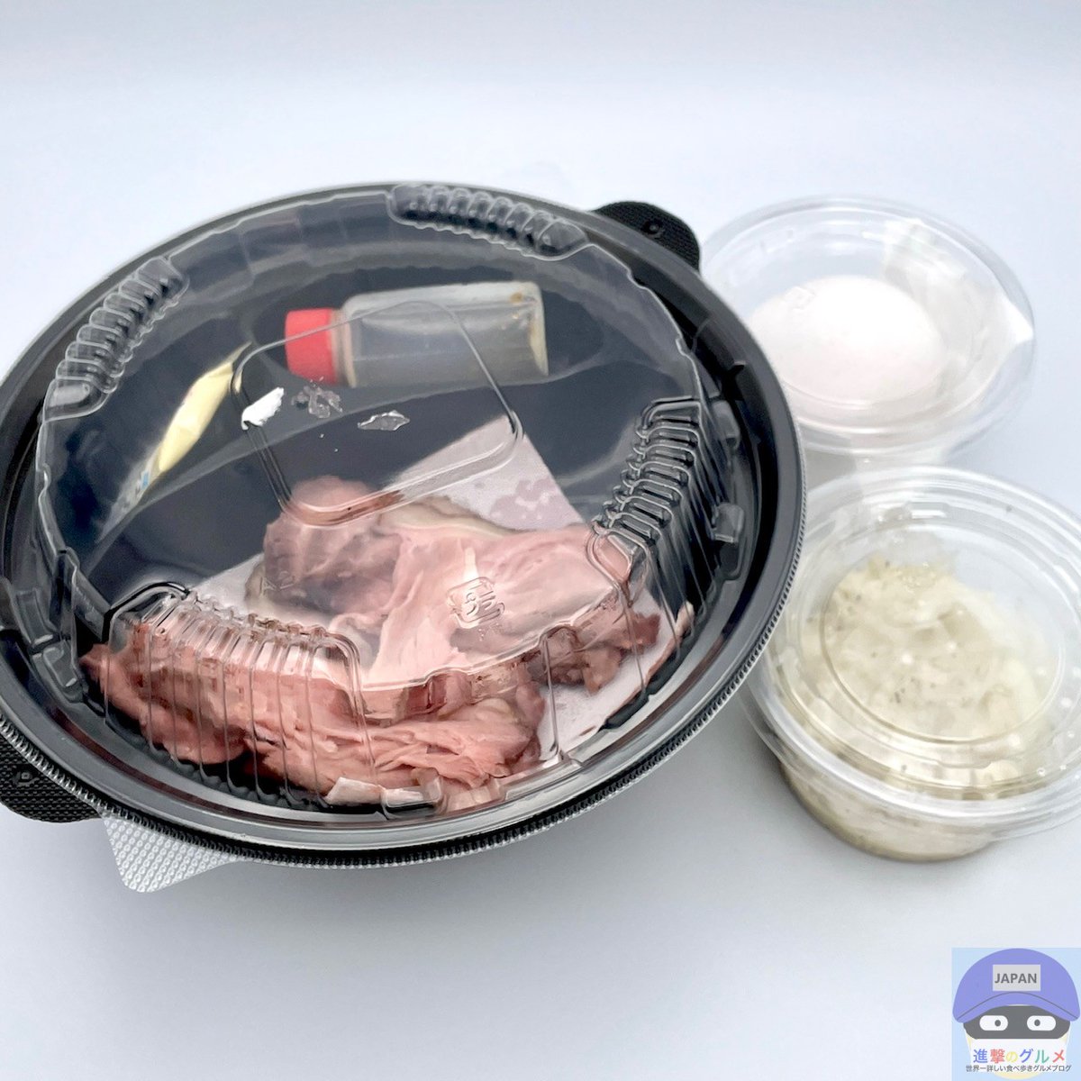 生たまご、濃厚な醤油ダレ、ホースラディッシュ付き。